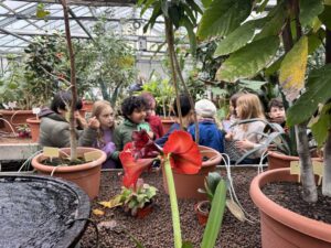 In Gruppe eingeteilt begann dann eine Rallye rund um die Pflanzenwelt im Gewächshaus. Man musste wie ein Detektiv ganz viel suchen und finden und das hat richtig Spaß gemacht. Ich weiß jetzt zum Beispiel, welche Pflanze mit süßen Früchten neben dem großen Kakaobaum steht.